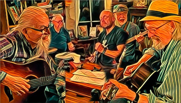 However, the song hasn’t been stagnating, as it turns out. When the tune finally did roll around again at last week’s gathering, it had been percolating in everyone’s memory. That was obvious, because all kind of exciting new ideas came out as the solos went around the room.