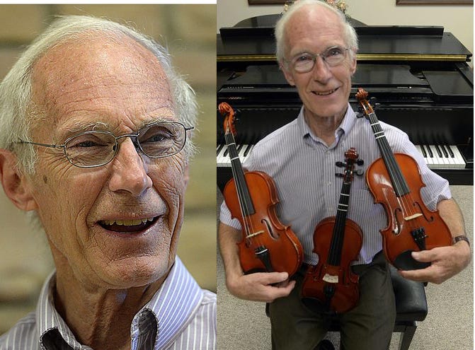Joe brought a variety of instruments — a gourd banjo, a mountain dulcimer, a mandolin and several fiddles — and “we played a variety of stuff,” Charlie wrote, “from jigs and fiddle tunes to ballad to even one jug band tune. The class really seemed to like it. Very attentive, lots of questions and visiting afterward.”