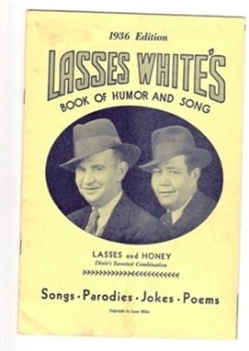 But it turns out that Eldon and the Baker boys didn’t write “One-Eyed Sam.” The creative force behind this fun tune was a man named Leroy Robert “Lasses” White, a multifaceted entertainer whose career spanned minstrelsy, vaudeville and Hollywood cinema.