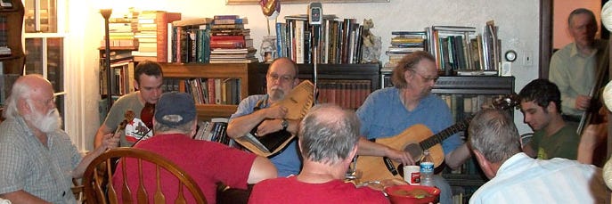 “One-Eyed Sam,” a spirited 1935 novelty number that occupies a unique space in the history of Western swing and country music, briefly flashed in the Floodisphere, as you can hear and see in the video below that Pamela Bowen captured at a Flood gathering 16 years ago this winter: