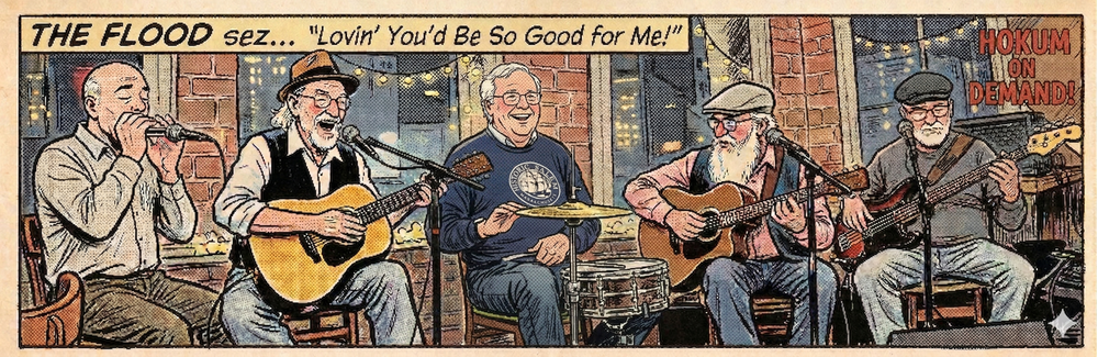 The Flood started playing around with hokum music — those good old jug band tunes from the 1920s — about a half century ago, but it took another 20 years for us to feel confident enough to try to write one of those kind of songs ourselves.