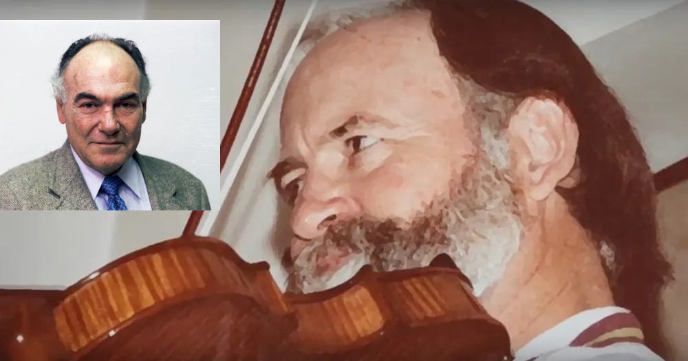 “When he tucks his fiddle under his chin, under a shaggy brown and gray beard, and cradles it in his big round shoulders and thick arms, the fiddle seems fragile, toy-like.