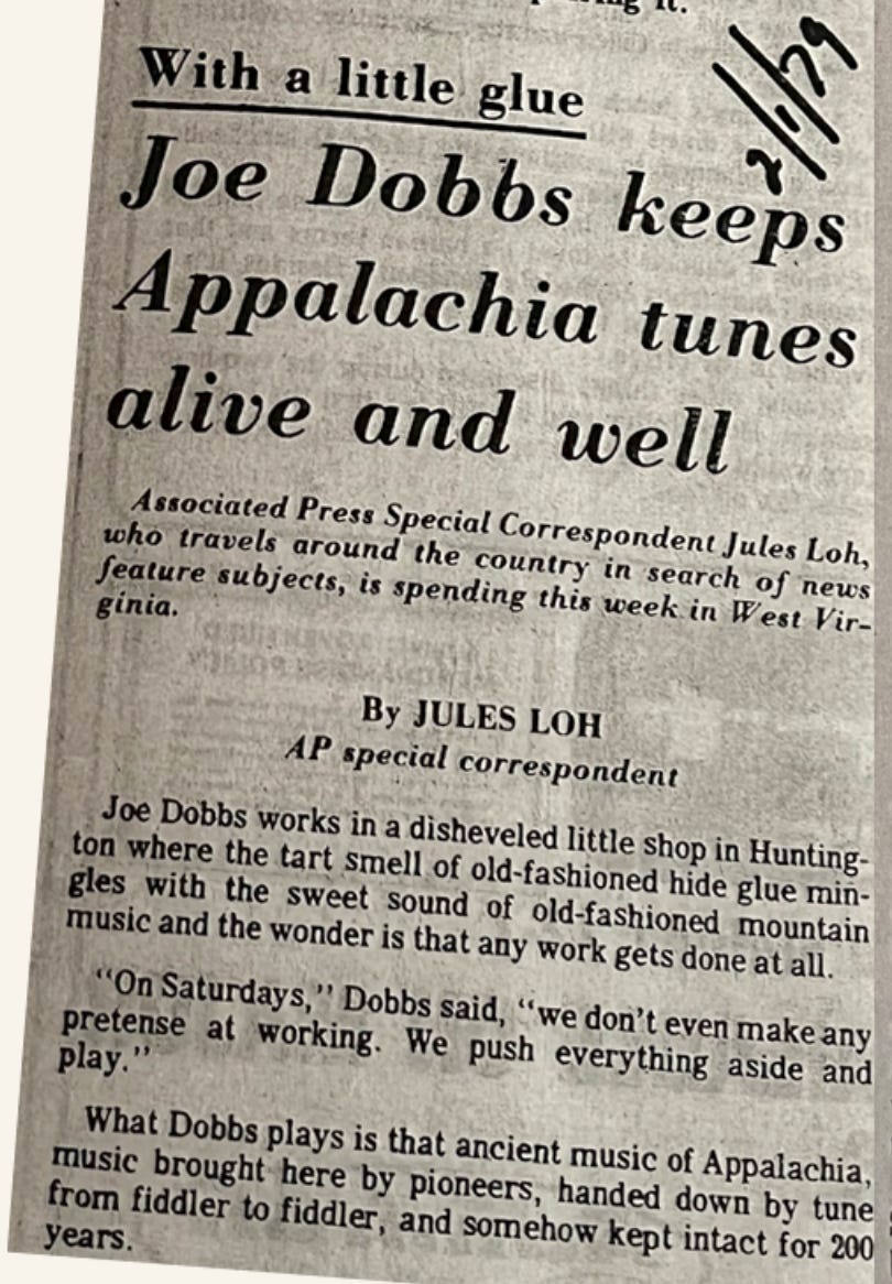 Rambling across the country looking for stories to tell, award-winning journalist Jules Loh landed in Huntington on a winter’s day 47 years ago this week and almost immediately he heard about fiddler Joe Dobbs.