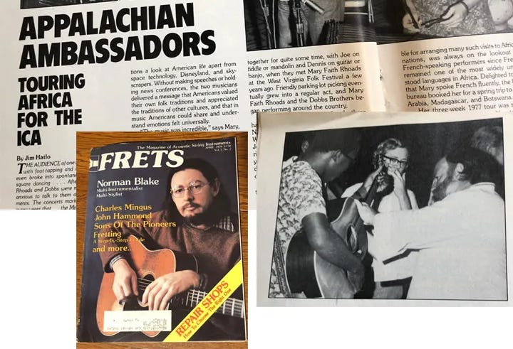 As reported here earlier, two months after the Loh story hit the AP wires, Joe was featured in the second issue of the new Frets magazine in a feature story about his good will mission to Africa with folk artist Mary Faith Rhoads.